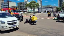 Motociclista tem lesão grave na perna após colisão com carro, no Centro