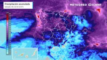 Ya están aquí el frente y el río atmosférico: previsión de precipitaciones acumuladas