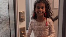 Watch as a lively girl bubbles over with joy when she sees her dad's car pulling up outside their house.