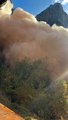 Info: A rockslide leaves behind clouds of dust at Weeping Rock in Zion National Park.