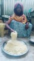 A woman eats a large amount of pasta امرأة تأكل كمية كبيرة من المعكرونة