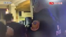 北市KTV狂歡完離場爆口角 醉男嗆聲遭上銬管束 (翻攝畫面)