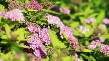 Bee Pollinating Spirea Flowers