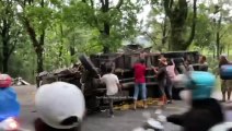 INNALILLAHI,. TRUK PLAT "B" TERGULING !!! Rem Blong Di Turunan,