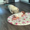 القطة الأم تظهر طفلها لأحدث فرد في العائلة