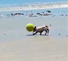 chien jongle sur la plage