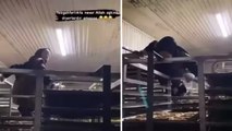 DÜZCE'de bir fırında çalışan tezgahtar kadın, pişmeye gidecek olan kurabiyelerin bulunduğu tepsilerin takılı olduğu rafların üzerinde çizmeleriyle dolaştı. Tezgahtar o anları ise sosyal medya hesabında paylaştı.