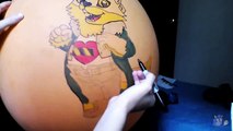 Chubby Kitsune Zero (©his player) , I drew him in a giant green China 36" balloon, here I am drawing the final linework on the balloon