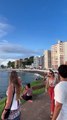 Helicóptero sofre queda no mar da praia; veja vídeo