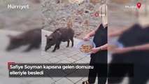 Safiye Soyman kapısına gelen domuzu elleriyle besledi