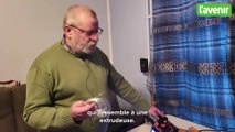 00:32 Alors un vélo broyeur, ça nous permet après avoir collecté des bouchons de faire un peu de sport et puis de broyer un peu le plastique