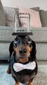 Harlso the Dachshund Balancing Newton's Cradle on His Head