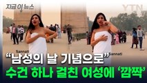 "남성의 날이니까"...수건만 달랑 걸친 인도 여성에 '화들짝' [지금이뉴스] / YTN
