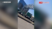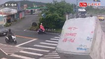 驚悚影像曝光!疑轉彎車速過快 車上23公噸超巨大理石飛出險砸中騎士(警方提供)