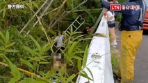下山車速過快田寮山區自撞護欄摔落邊坡 少年騎士腳受傷(警方提供)
