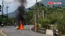 重機30日台3線過彎自摔火燒車 沖天火勢狂冒黑煙