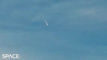 00:09 illuminated by a massive fireball streaking across it.