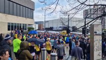 Footage of the finish line at the Manchester Marathon 2024 as thousands of runners took on the 26-mile course.