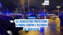 Agricoltori francesi protestano a Parigi contro l'accordo Ue-Mercosur con i trattori