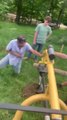 Kid gets stuck in hole and has to be dug out