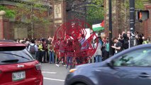 ผู้ประท้วงที่สนับสนุนปาเลสไตน์เดินขบวนไปยังบ้านพักของประธานาธิบดีการ์เบอร์