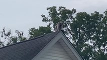 Group of Dogs on Roof of House Bark at Cat on Street