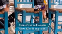 Captan a sujeto engañando a un gatito para patearlo hacia el mar en Grecia