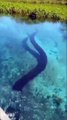Brezilya'da bir yerleşim yerinin yakınlarında devasa anakonda görüntülendi. Anakondanın su içmek için dere yakınlarında gezdiği akıllara geldi.