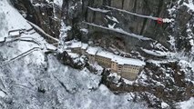 Doğu Karadeniz'in incisi Sümela Manastırı karla kaplandı: Altındere Vadisi’nde görsel şölen