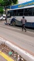 Bus del transporte públicó arrastró una motocicleta