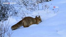 Kendisine verilen etlerin bir bölümünü yiyen tilkinin, kalanını kara gömdüğü anlar kaydedildi