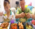 A young couple eating their food funny way