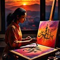 SUBHANALLAH Arabic calligraphy on canvas using acrylics/ sunset background calligraphy