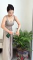 Beautiful Girl Watering and plant for green life