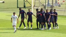 les bleus sont devant, 1 but à 0 et ça méritait bien cette petite danse.