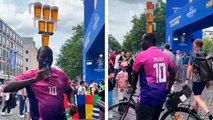 Eurocopa: Malabarista de cervezas causa sensación en Colonia con su peculiar habilidad