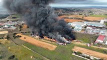 Así arde la nave de La Bañeza que ha provocado una nube tóxica