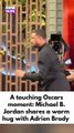 A touching Oscars moment: Michael B. Jordan shares a warm hug with Adrien Brody on stage