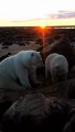 Bear and his child enjoy at beautiful evening