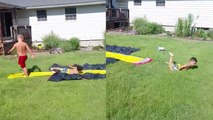 By the time the adorable star of this clip realized that she should leave water-sliding for another day, it was too late, leading to the comical moment captured in the video.