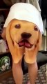 Dog and goat drinking a milk
