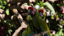 Parrots on a branch in a nature reserve