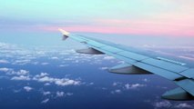 Pink sunset seen from a plane window