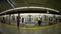 Fisheye lens shot of the subway arriving