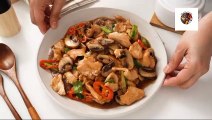 Tender chicken stir fry with mushroom