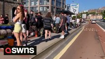 The frontman waved to shocked fans who stopped to take photos of the band.