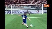 Partita del cuore all'Aquila, Bonelli segna rigore a Matteo Renzi ed esulta