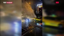 Küçükçekmece'de su borusu patladı: Sürücü ve yayalar zor anlar yaşadı