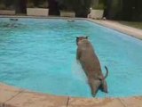 American Staff swimming in the pool