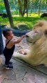 Beautiful kid VS Lion